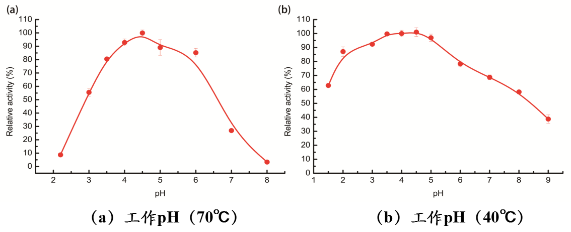 作用的pH值广泛,从pH2.0-6.5均有良好的作用效果。